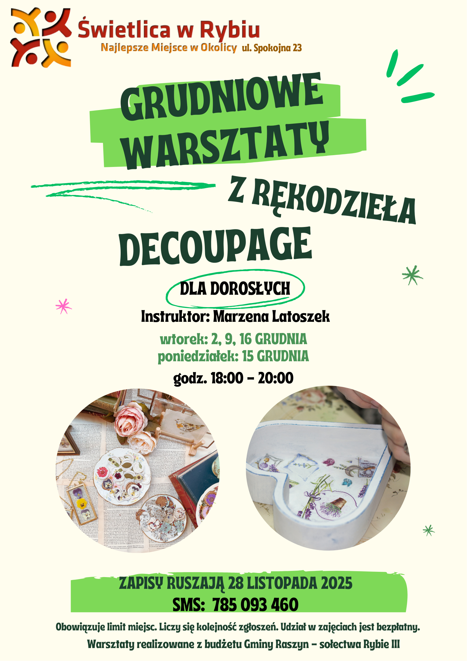 GRUDNIOWE WARSZTATY Z RĘKODZIEŁA DECOUPAGE