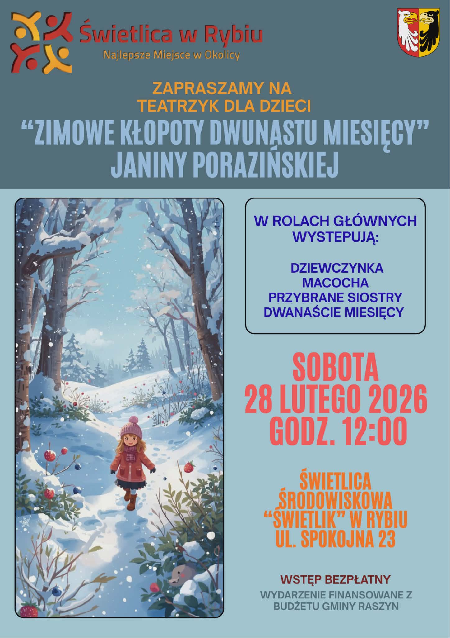 FERIE ZIMOWE ORGANIZOWANE PRZEZ ŚWIETLICĘ ŚRODOWISKOWĄ ŚWIETLIK SĄ FINANSOWANE Z BUDŻETU GMINY RASZYN.